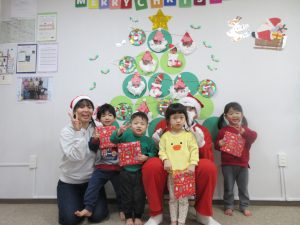 みんなプレゼントを貰ってニコニコ😊サンタさんと記念写真を撮りました🎶