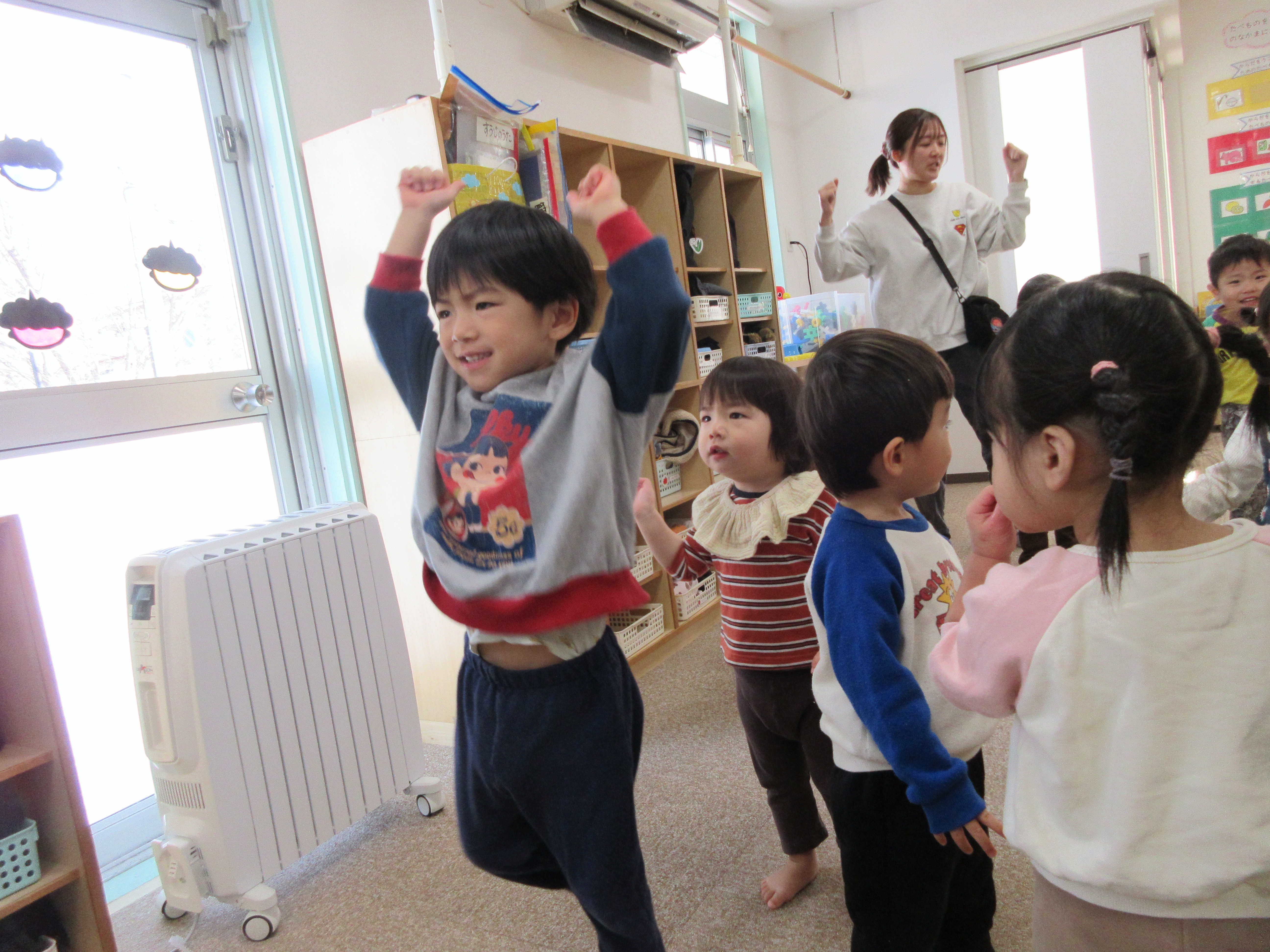 朝、『鬼のパンツ』を踊って「つよいぞ~つよいぞ~💪」と力アップした子ども達✨