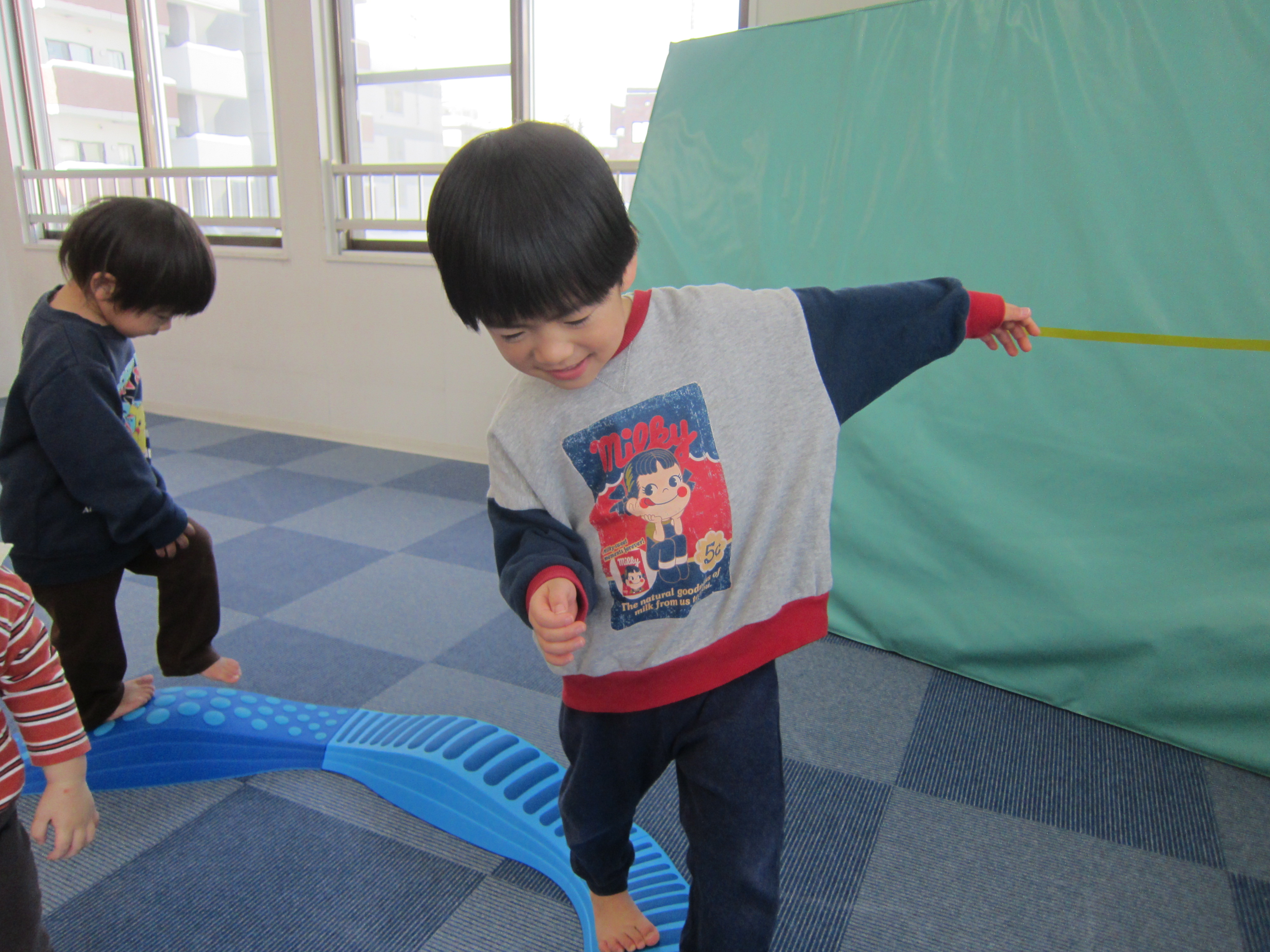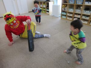 小鬼を倒した後はみんなで喜び、マットやサーキット遊び、先生鬼(?)と追いかけっこをして遊びましたよ~